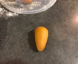 15. Take a 8g small dough, knead it long and thin at both ends, and the length is close to twice the length of the body.