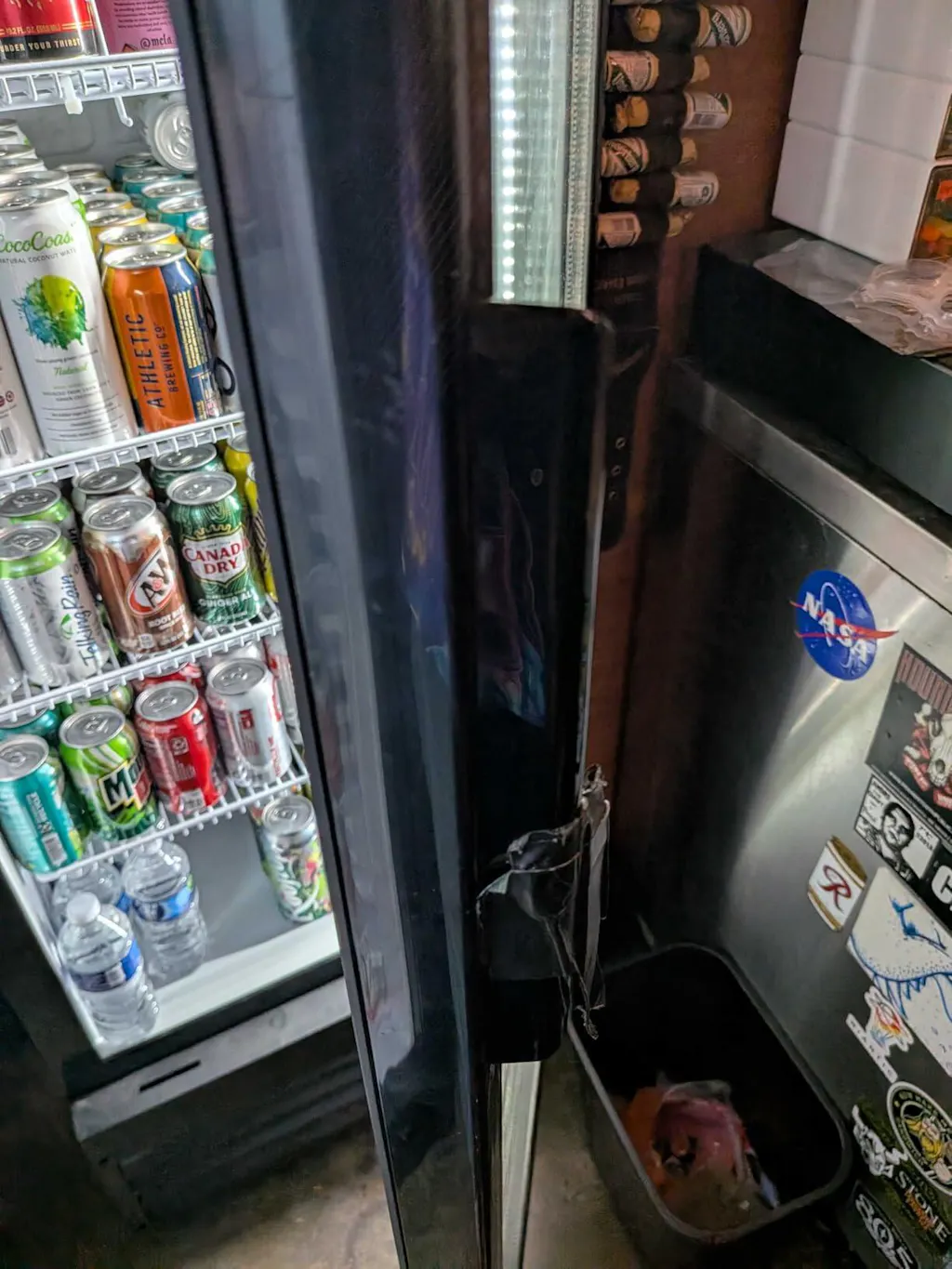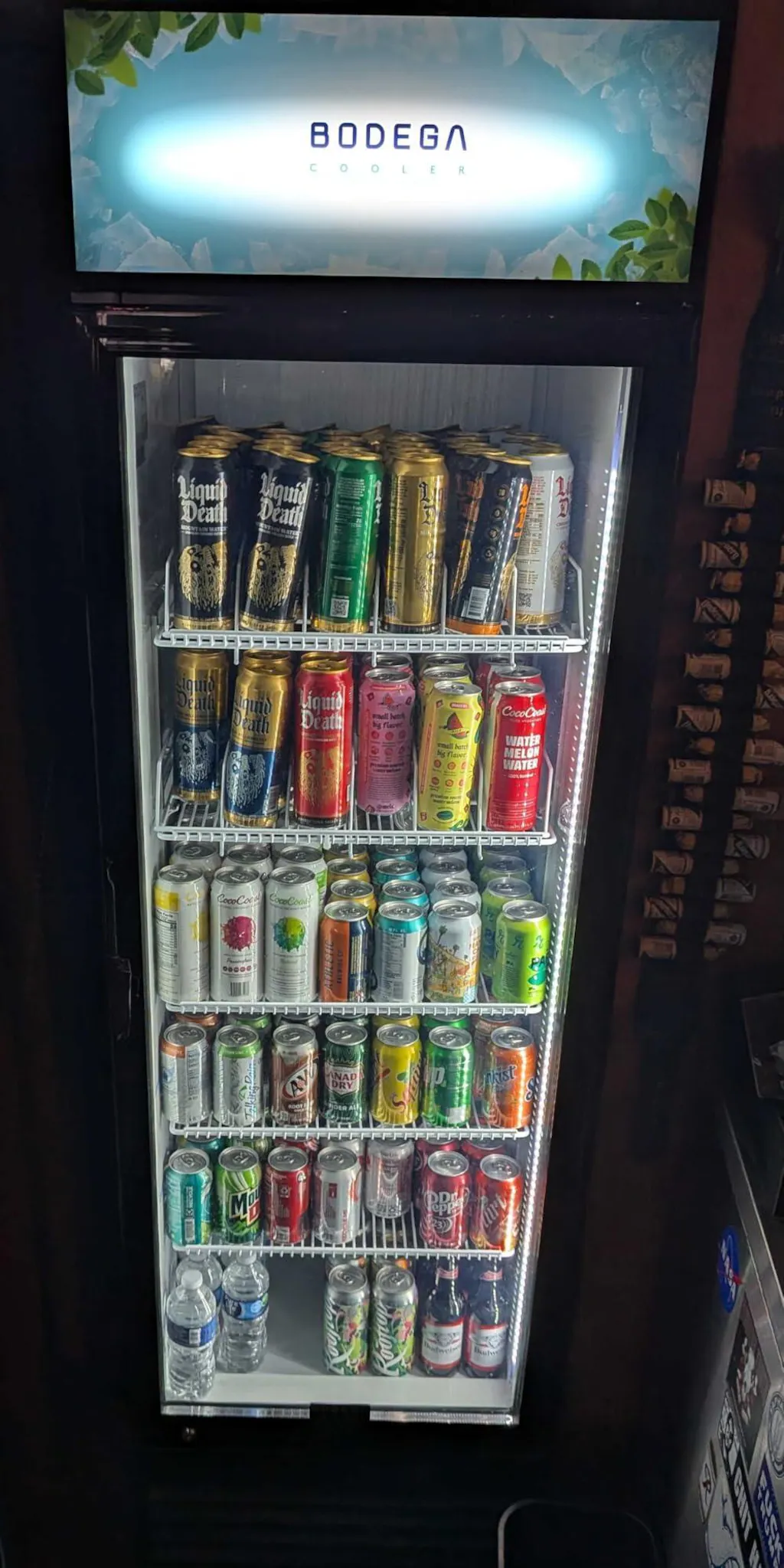 This glass door fridge features dual LED lights and a removable logo panel—perfect for personalizing your man cave, bar, or business! Add your own logo, graffiti, or branding in minutes. 🍻